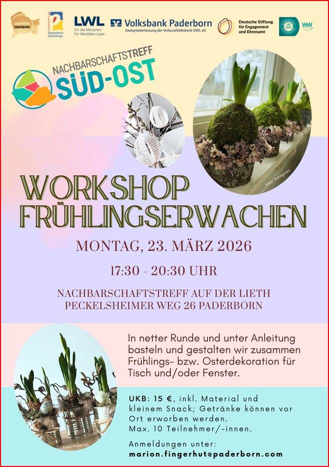 Der Nachbarschaftstreff Paderborn Süd-Ost ist nicht nur ein Café, sondern ein Ort des sozialen Engagements. Wir fördern die Gemeinschaft und den Austausch unter den Bewohnern des Viertels und bieten zugleich ein gemütliches Ambiente zum Entspannen und Genießen. Unser Team freut sich darauf, Sie bei uns willkommen zu heißen!